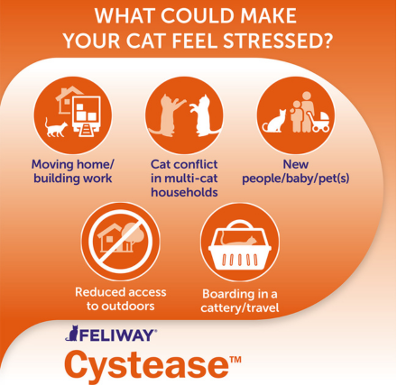 Stress is a common cause of cystitis in cats. If your vet has told you that your cat's cystitis is due to stress, using FELIWAY Cystease along side FELIWAY diffusers can be really beneficial for your cat.