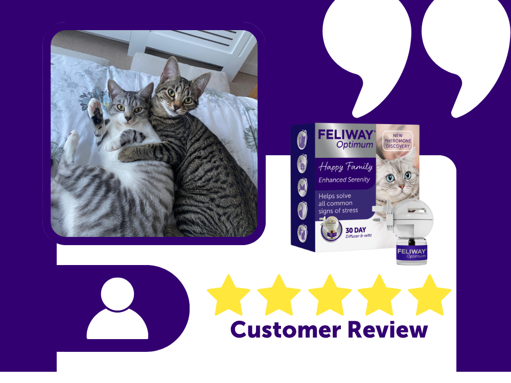 Lily and Luna - our 1-year-old rescue cats. We recently moved house, and while Luna adjusted quickly, Lily began showing signs of anxiety and overgrooming. On our vet's advice, we tried the Feliway plug-in diffuser, and it has been an absolute game changer. Both cats are now much more settled, Lily's anxiety has eased, and theyโรรดve gone back to enjoying their favorite cuddles together while happily exploring and loving their new home.