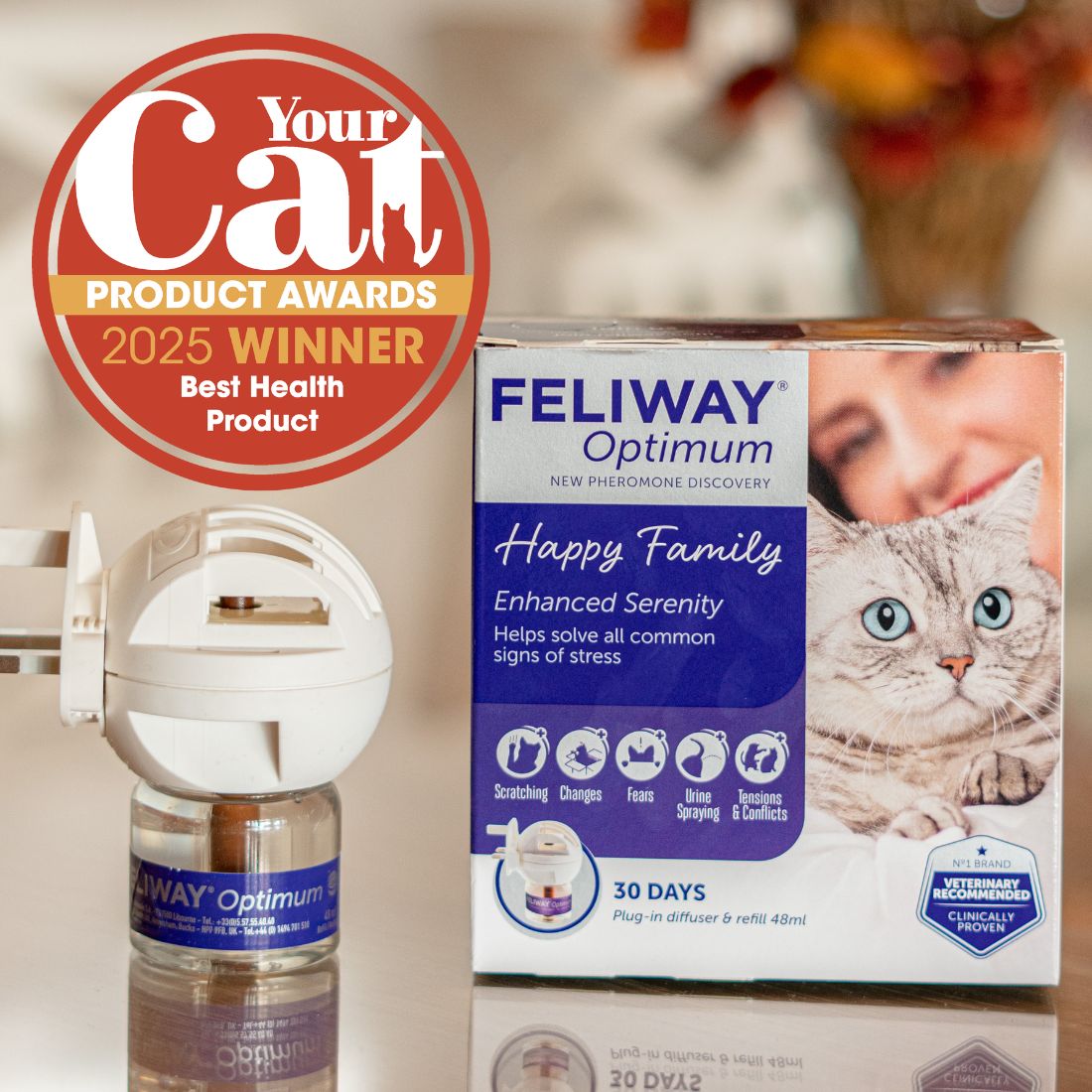 FELIWAY® Optimum can also help calm your cat and reduce the urge to mark territory. If your cat’s spraying behaviour continues, consult a vet or a feline behaviourist for further support.